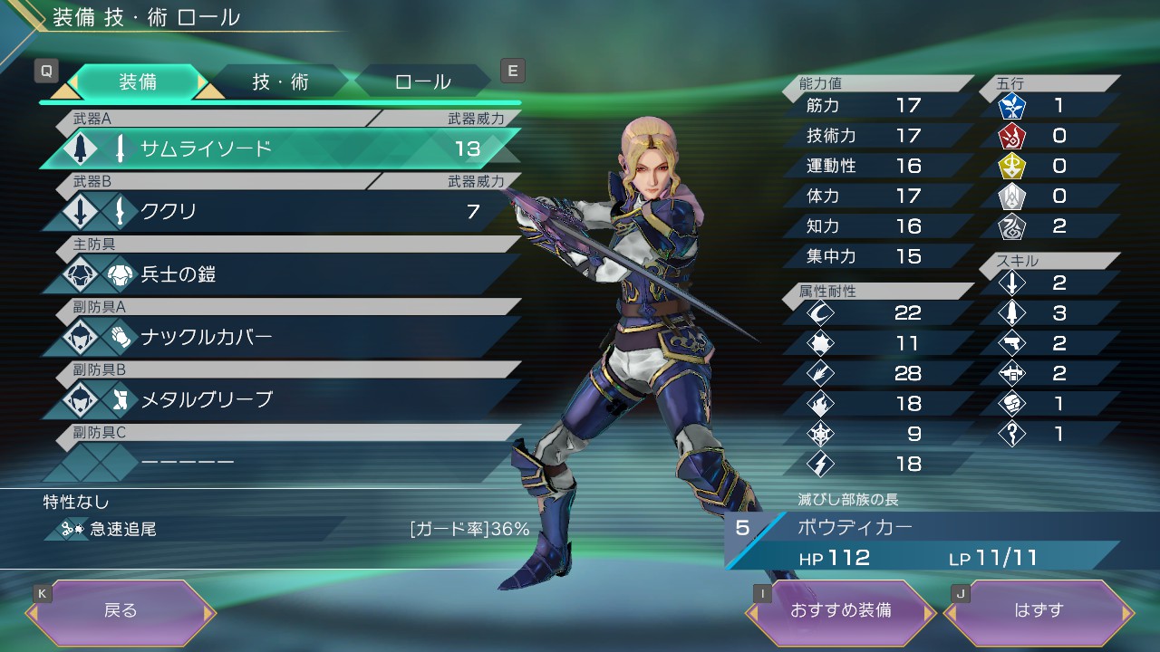 スキルレベルとは異なり、技と術には1〜5の「ランク」が存在します。ランクが上昇すると、技や術のパフォーマンスが少し向上します(今作では、ランクアップの重要性はさほどではありません)。また、プロテクト技や補助効果のみの技や術は、消費BPが減ります。
